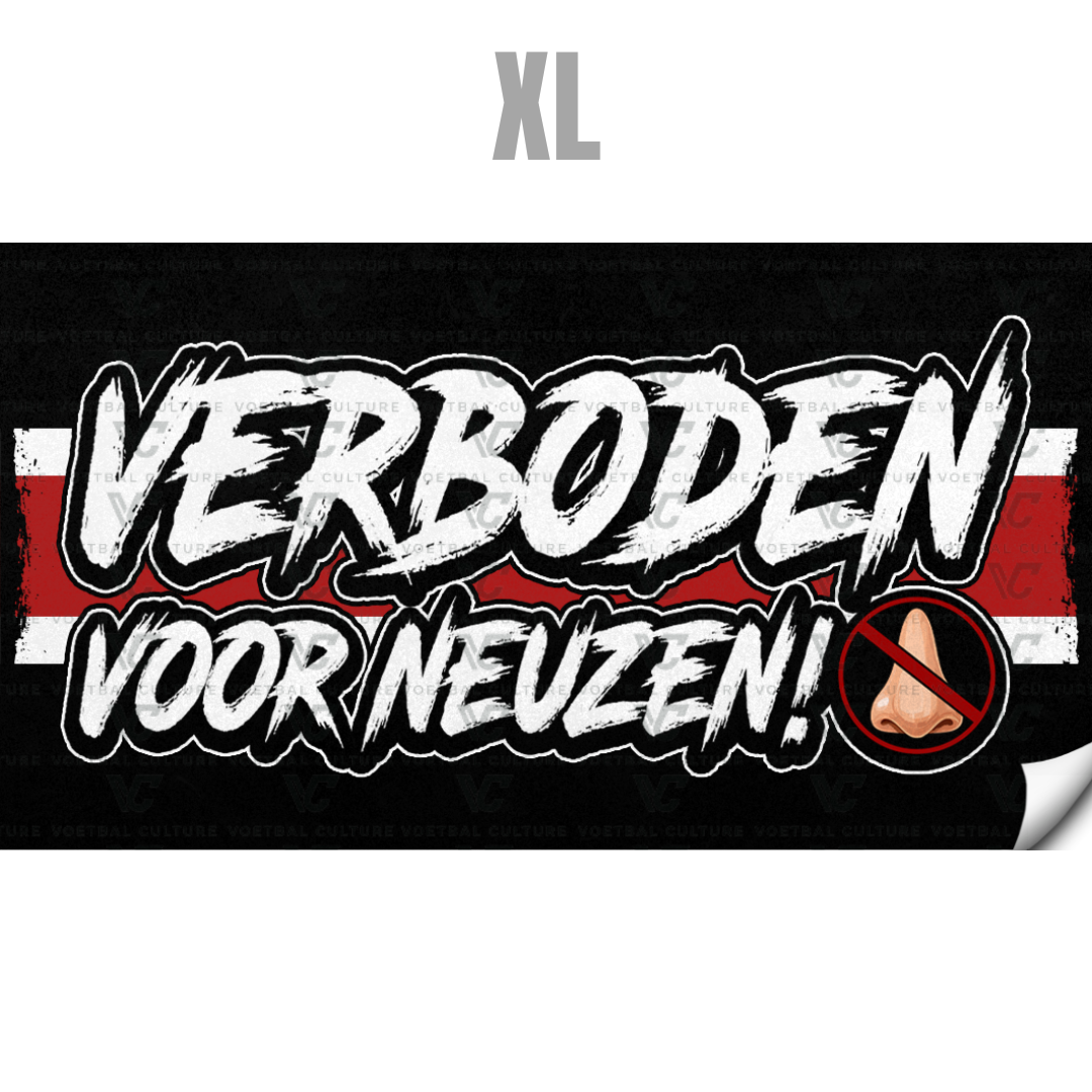 Deze ‘Verboden Voor Neuzen!’ sticker (18×10 cm) is een grote en opvallende statement binnen de supporterscultuur. Dankzij het grotere formaat komt het rauwe design nog harder naar voren en is jouw boodschap van afstand goed zichtbaar.